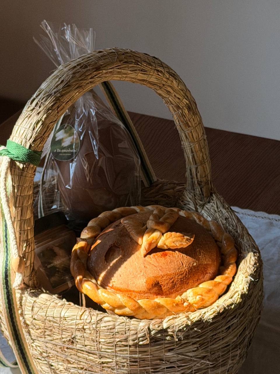 Паска “Українська” – це справжнє поєднання традиції та душевного тепла. Цукати, горіхи, родзинки – все це настояне на ромі, а зверху – символічний візерунок із тіста, що додає їй особливого святкового настрою.